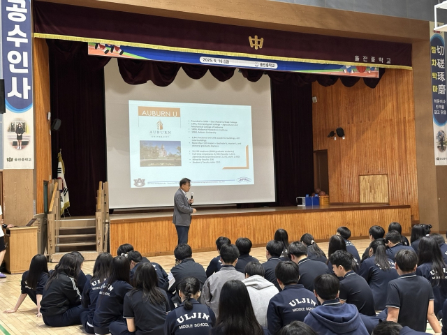경북 울진중학교 출신으로 현재 미국 오번대학교에서 교수로 재직 중인 최종률 교수가 모교를 찾아 후배들에게 뜻깊은 진로 특강을 열었다.