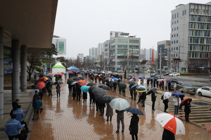 (코로나 검사를 받기위해 줄을 선 포항시민들의 모습)
