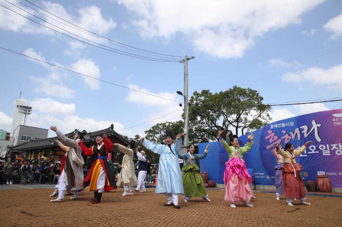 올해 처음 개최된 ‘흥해라 조선오일장 축제’는 △지역의 풍물단과 주요내빈, 농요팀이 결합한 길놀이 공연과 사또 행차 퍼레이드 △창작 장마당극 ‘흥해라 조선오일장’ △한동대학교 하향, 실버라이닝 및 흥해가족오케스트라 등 지역 동아리팀 공연 △포항농요보존회와 국정국악원의 연합 국악 공연 등 다채로운 지역의 이야기와 소리가 결합된 이색적이고 풍성한 공연들로 진행되어 수많은 관객들의 마음을 사로잡았다.