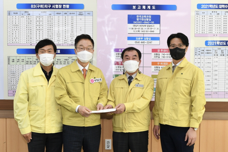 경북도의회 교육위원회 조현일 위원장(경산)과 정세현 위원(구미)은 수능을 하루 앞둔 2일 오전 구미교육지원청에 설치된 2021학년도 대학수학능력시험 경북본부를 방문했다.
