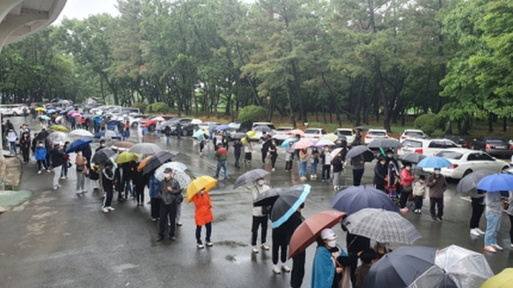 이날 비가 오는 가운데 이른 아침부터 시민이 나와 줄을 서면서 시민운동장 바깥을 한 바퀴 반 이상 돌 정도로 수천 명의 시민이 길게 줄을 늘어섰다.