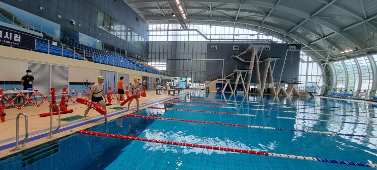 포항해양경찰서(서장 한상철)는 지난 4월 30일 출범한 김천시 최초 공기업인 김천시 시설관리공단과 협업을 통해 12일 제3회 수상구조사 국가자격시험을 김천시 시설관리공단 실내수영장에서 시행한다고 밝혔다.