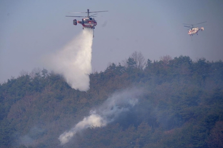 산림청과 영덕군 등에 따르면 이날 불이 나자 헬기 14 대, 산불진화차 13 대, 산불진화대원 500 여명을 동원해 오전 11 시쯤 진화를 마쳤다.
