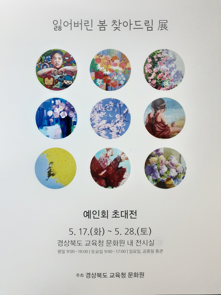 경상북도교육청문화원(원장 김현동)이 그림을 좋아하는 사람들의 모임인 예인회의 ‘잃어버린 봄 찾아드림 展’을 개최한다. 5월 두 번째 초청 행사인 이번 전시회는 17일부터 이달 28일까지 열린다.