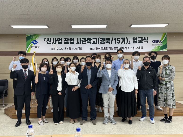 경상북도와 경상북도경제진흥원(원장 전창록, 이하 진흥원)은 지난 30일 진흥원 안동 북부지소에서 2022년도 경북 신사업 창업사관학교 15기 입교식을 갖고 본격적으로 신사업 예비 창업자 양성을 위한 교육을 시작했다고 밝혔다.