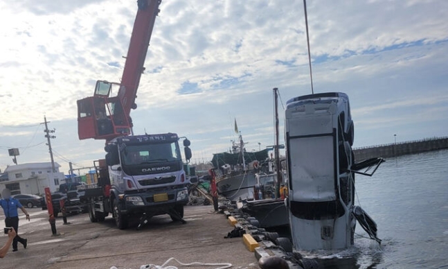 영덕 강구항 내 해상에서 SUV 차량이 추락해 80 대 운전자가 숨졌다.