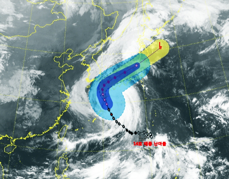 '난마돌'은 19일 오전 3시 가고시마 북북서쪽 약 130㎞ 부근 해상을 지날 것으로 예상되는데 19일 새벽부터 오후까지 우리나라에 영향을 미칠 것으로 기상청은 전망했다.