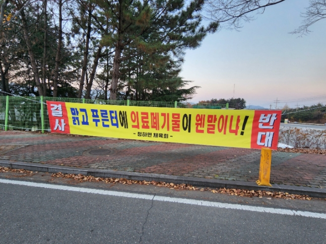 최근 청하지역 주민들로 구성된 반대대책위 면민들이 포항시에서 기자회견을 통해 ‘결사반대’ 의 목소리를 내고, 청하면 곳곳에 반대현수막을 내거는 등 면민 전체가 생존권 사수의 움직임을 보이고 있다.