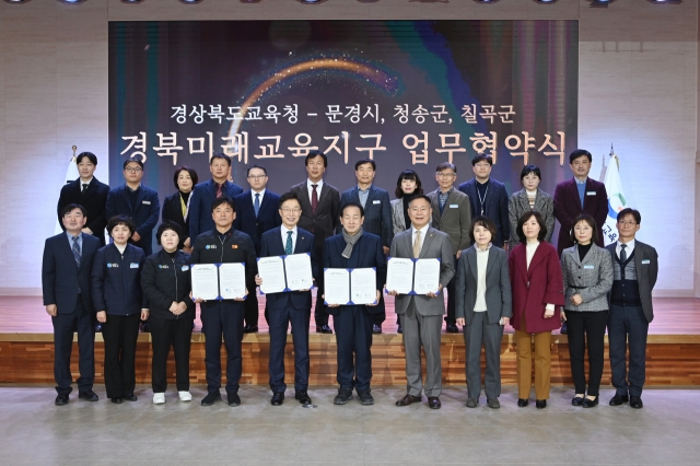 경북도교육청은 6일 지난해 기초지자체 공모로 선정된 문경시, 청송군, 칠곡군과 '경북미래교육지구' 업무협약식을 열었다.