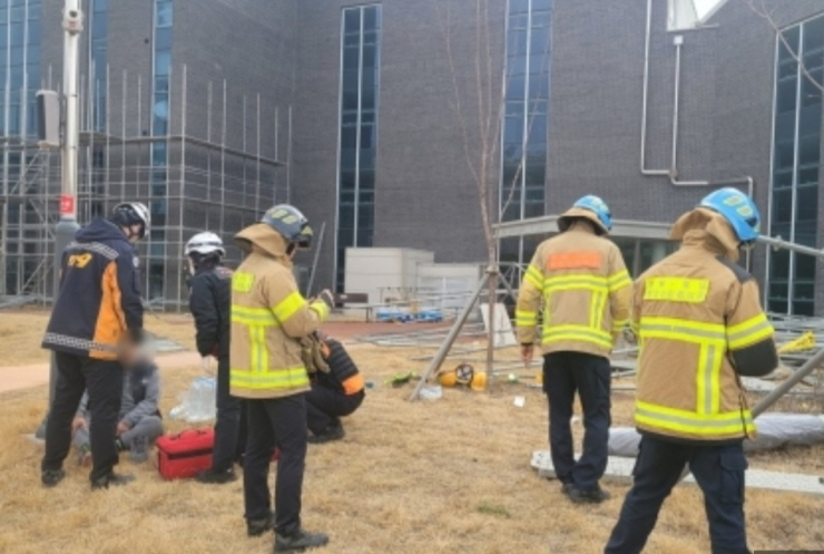 사고는 작업자들이 인재원 외벽 공사를 위해 3∼5층 높이 보조작업대 위에서 일하던 중 작업대가 무너지면서 발생했다.