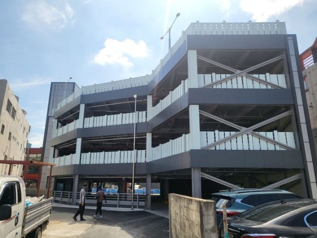 이 타워형 공영주차장은 부지면적 4131㎡에 지상 3층, 4단으로 차량 99대를 수용할 수 있다.