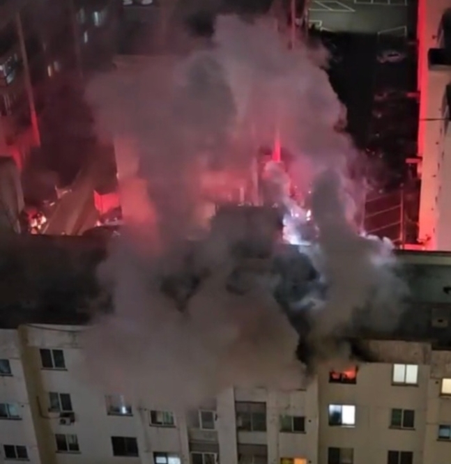 17일 오후 7시 51분께 경북 구미시 한 5층짜리 아파트 5층 가구에서 원인이 밝혀지지 않는 불이 났다.