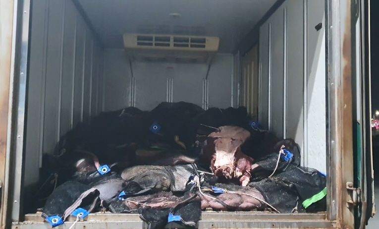 현장에서 압수된 고래고기는 밍크고래 2마리를 해체해 자루에 담은 것으로 확인됐다. 해경은 확보한 휴대전화와 수기 장부 등을 분석해 범행 전모를 추적했다.