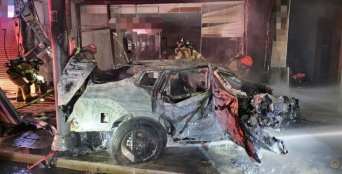 사고가 발생하자 인근 소방서에서 출동해 이날 오전 4시22분쯤 완전 소진됐으나 70대 운전자가 숨지고, 인근 건물 일부와 집기 등도 피해를 입은 것으로 조사됐다.
