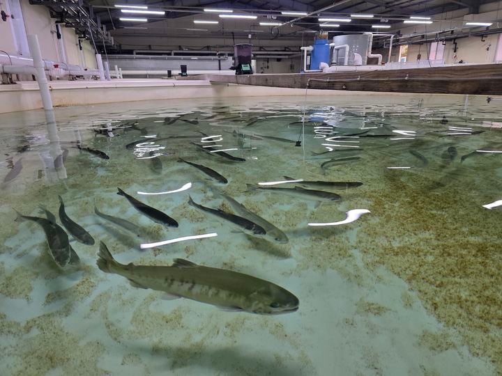 2023년에는 냉수성 어류인 연어를 여름철 고수온기에도 사육할 수 있도록 정보·통신기술(ICT) 기반의 순환여과 사육시스템을 구축해 올해 몸길이 60㎝, 체중 2.5㎏ 정도의 성어로 성장시켰다.