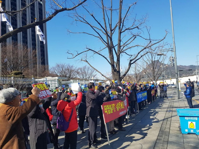 ▲ 정부종합청사에서 흥해 한미장관맨션 주민들이 시위를 하고 있다