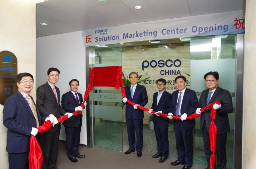 19일, 포스코는 포스코차이나 상해사무소에서 정탁 철강사업본부장을 비롯한 주요 고객사 대표 등 30여명이 참석한 가운데 중국 솔루션마케팅센터 현판식을 개최했다.