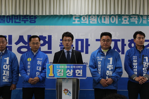 【포항/경북뉴스통신】정명교 기자=더불어민주당 포항남,울릉 부위원장을 맡고 있는 김상헌씨(44)가 포항제8선거구(대이,효곡동) 도의원 출마를 공식 선언했다.