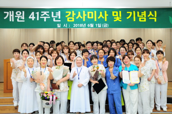 포항성모병원은 지난 1일 마리아홀에서 이종녀 병원장, 김병욱 의무원장, 최순호 행정처장 등 주요 내빈 및 직원 300여명이 참석한 가운데 개원 41주년 감사미사 및 기념식을 가졌다.
