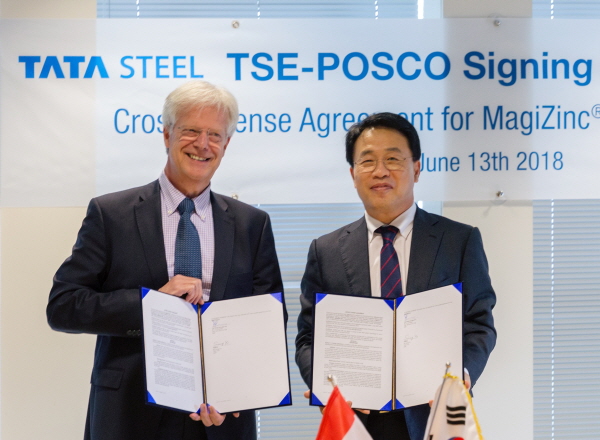 【포항/경북뉴스통신】김명남 기자=포스코가 유럽지역 철강메이커인 Tata Steel Europe(이하 TSE)과 도금강판 기술을 상호 공유키로 했다.