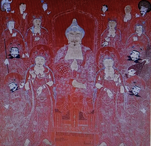 이 그림은 전체 높이가 3m 정도로 삼베 바탕에 붉은 물감을 칠한 뒤 인물·의복 등을 흰색 물감으로 그린 불교 작품으로 비로자나불을 중심으로 문수보살·보현보살·사천왕상 등 권속(眷屬)이 둥글게 에워싼 원형 구도로 구성돼 있다.