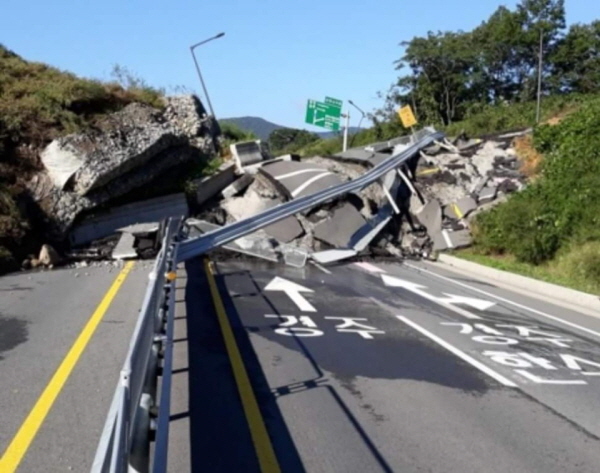 특히 경주시 양북면 장항리 국도 4호선은 약 250m 도로 전체가 솟구쳐 올라 현재 차량운행이 전면 통제됐다.