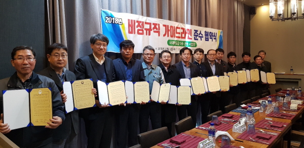 현재 포항고용노동지청의 경우 이날 11개 사업장이 비정규직 가이드라인 협약을 체결한 것을 비롯 현재까지 모두 17개 사업장이 협약을 체결했다고 밝혔다.